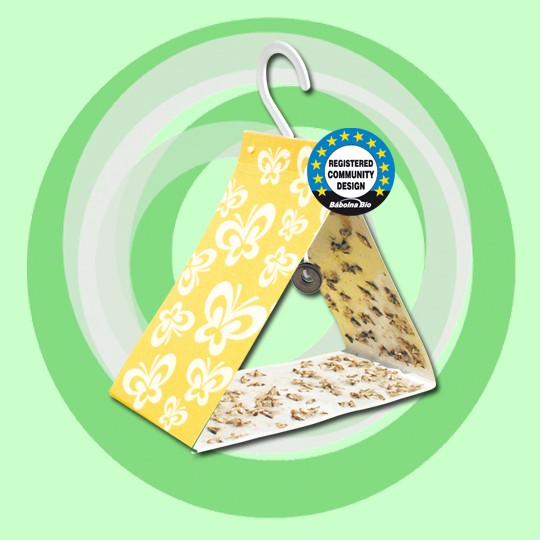 Dreieckige, faltbare Klebefalle mit Plastikaufhängung und hochaktivem Sexuallockstoffdispenser zur Befallsüberwachung und zum Fangen von folgenden Mottenarten: