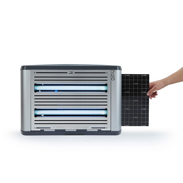 Mit seinem zeitgemäßen, dezent ästhetischen Design und seiner Leistungsfähigkeit ist die zweite Generation des Halo das vielseitigste Klebefoliengerät für Einsatzmöglichkeiten in vielen gewerblichen Bereichen. Halo wird als schlankes 15, 30 oder 45 Watt Modell angeboten und ist ideal zur professionellen Fluginsektenkontrolle geeignet sowohl für kleine als auch für große Bereiche.