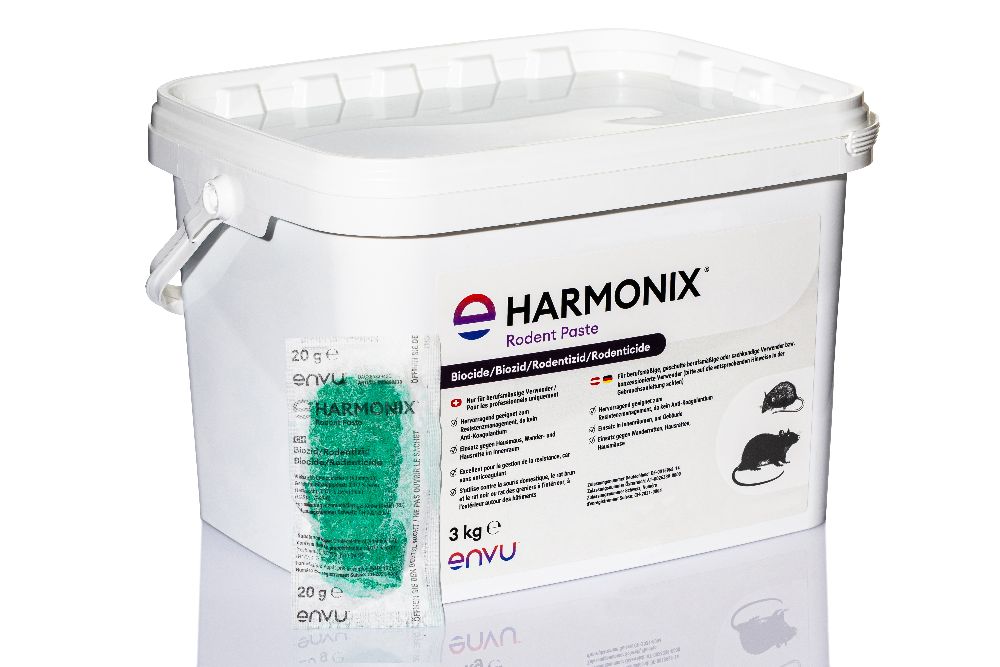 Die Harmonix® Rodent Paste eröffnet neue Bekämpfungsmöglichkeiten gegen Ratten und Mäuse, Dank des Wirkstoffs Cholecalciferol (auch bekannt als Vitamin D3) ist die Harmonix® Rodent Paste auch gegen Warfarin-resistente Ratten und Mäuse uneingeschränkt wirksam. Cholecalciferol gehört nicht zur Wirkstoffklasse der Antikoagulantien, deren Anwendung aufgrund des Risikos für Sekundärvergiftungen zunehmend restriktiv gehandhabt wird. Die Harmonix® Rodent Paste überzeugt durch flexible Einsatzmöglichkeiten in Innenräumen, um Gebäude und im Außenbereich (Erdbaubeköderung und Deponien). Eine hervorragende Eignung im Rahmen des Resistenzmanagements sowie die Zulassung für befallsunabhängige Dauerbeköderung sind weitere klare Vorteile des neuartigen Köders.