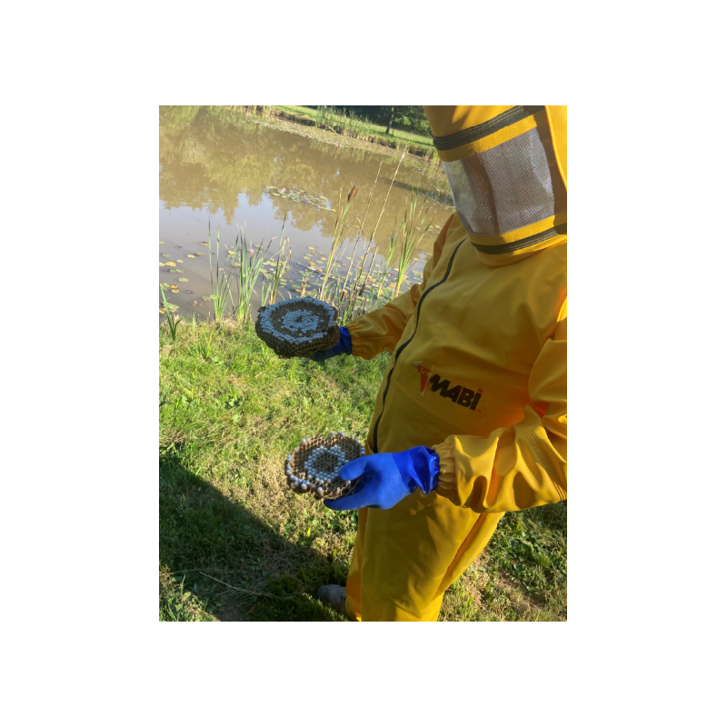 Der Schutzanzug gegen Asiatische Hornissen ist die Standardausrüstung für professionelle Schädlingsbekämpfer, die auf die Bekämpfung dieser Insekten spezialisiert sind. Er besteht aus Baumwolle mit PVC-Beschichtung und vereint Strapazierfähigkeit, Wasserdichtigkeit und Tragekomfort, sodass Sie beim Umgang mit Insektennestern sicher arbeiten können.