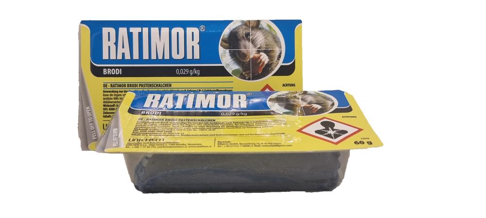 Ratimor® Pastenköder ist die wirksamste Formulierung. Sorgfältig ausgewählte Komponenten wie hochwertiges Weizenmehl, geschrotetes Getreide, eine Mischung aus verschiedenen Fetten und Ölen, Geschmacksverstärkern und Aromen sorgen für eine optimale Köderaufnahme, während Stabilisatoren die Oxidierung verhindern. Der Bitterstoff Bitrex ist gegen eine versehentliche Aufnahme von Nichtzielorganismen hinzugefügt.