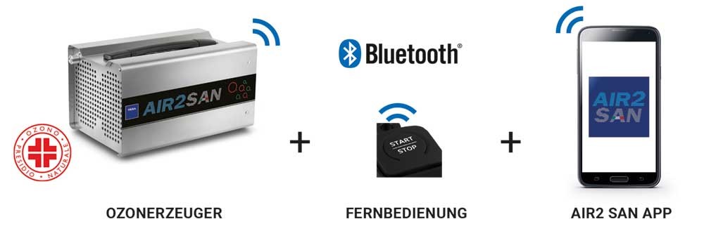 Im Gegensatz zu vielen anderen Produkten, in denen einfache Timer eingesetzt werden und deshalb die Räume nur näherungsweise mit Ozon sättigen, reguliert sich die TEXA Lösung auf Basis von Sensoren für Ozondichte, Lufttemperatur und Luftfeuchte. Auf dieser Weisemuss der Anwender nur das AIR2 SAN mittels Fernbedienung oder App starten und hat dann die Sicherheit der bestmöglichen Desinfektion.