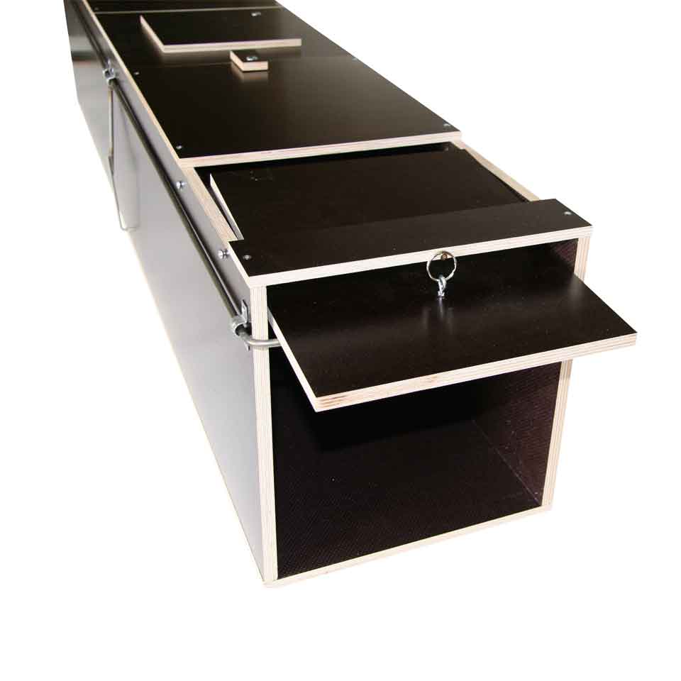 Für die Herstellung der Waschbärfalle – werden alle Materialien sehr sorgsam ausgewählt, deshalb werden ausschließlich europäische Siebdruckplatten verarbeitet. Diese werden auch im Fahrzeugbau verwendet. Dadurch ist die Falle nicht nur wetterfest, sondern auch sehr stabil und extrem langlebig.