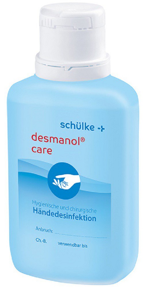 Das Schülke Händedesinfektionsmittel desmanol® care ist ein farbstoff- und parfümfreies alkoholisches Einreibepräparat zur  hygienischen und chirurgischen Händedesinfektion, mit zusätzlich pflegendem Panthenol.